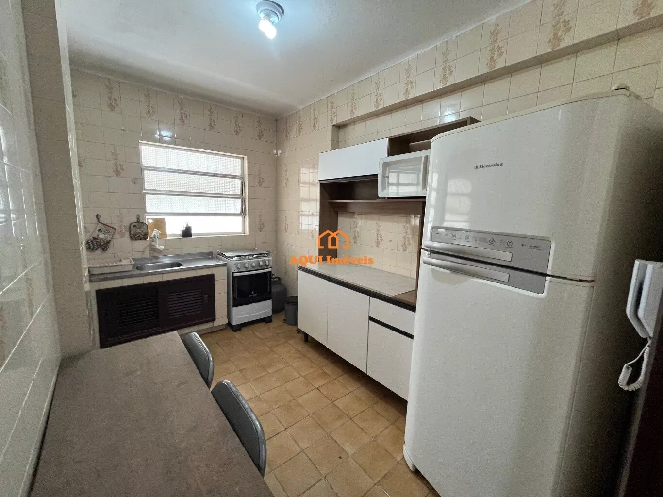 Kitnet mobiliado, próximo a Beneficência, sala/quarto, banheiro, cozinha e área de serviço, frente norte.