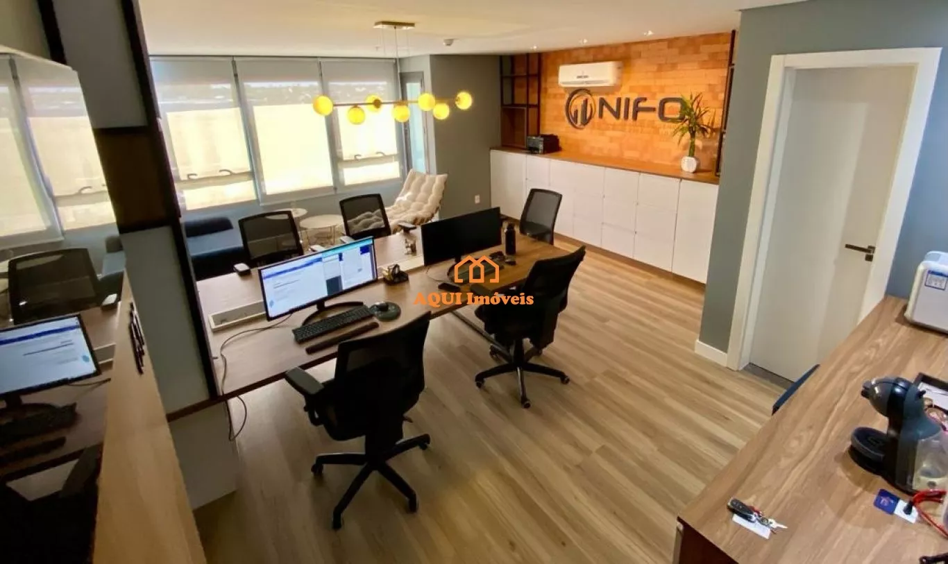 Sala comercial completa no Parque UNA, frente norte, completamente mobiliada com todos eletrônicos e marcenaria. TV, frigobar, cafeteira Dulce gusto, micro-ondas, purificador de água de última geração, ar condicionado, 5 cadeiras ergonômicas hiper confortáveis, sofá, mesa de centro, e cadeira costela com puff.