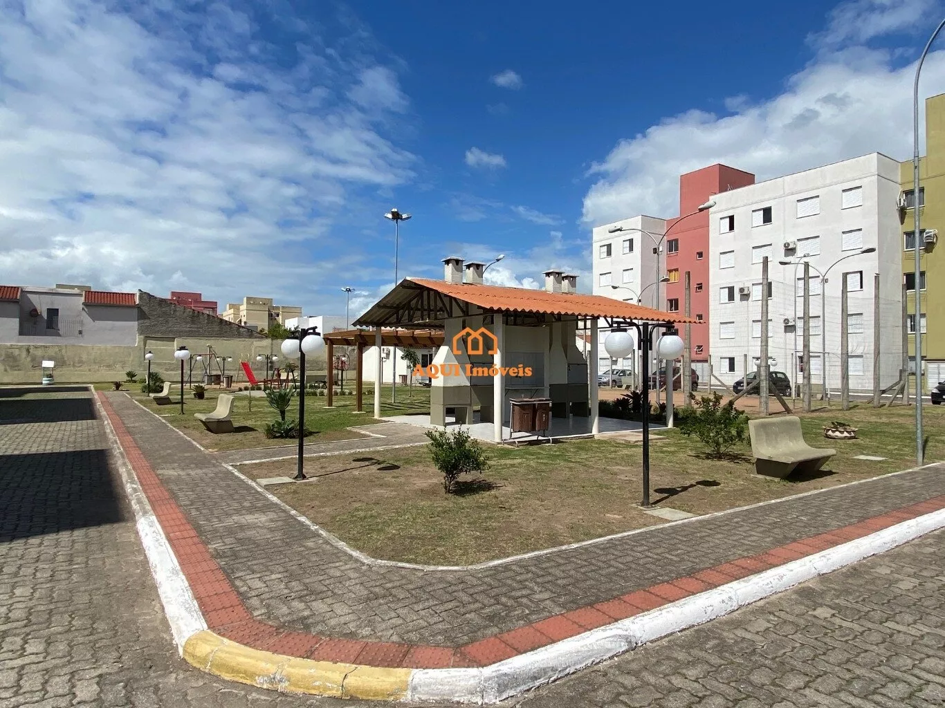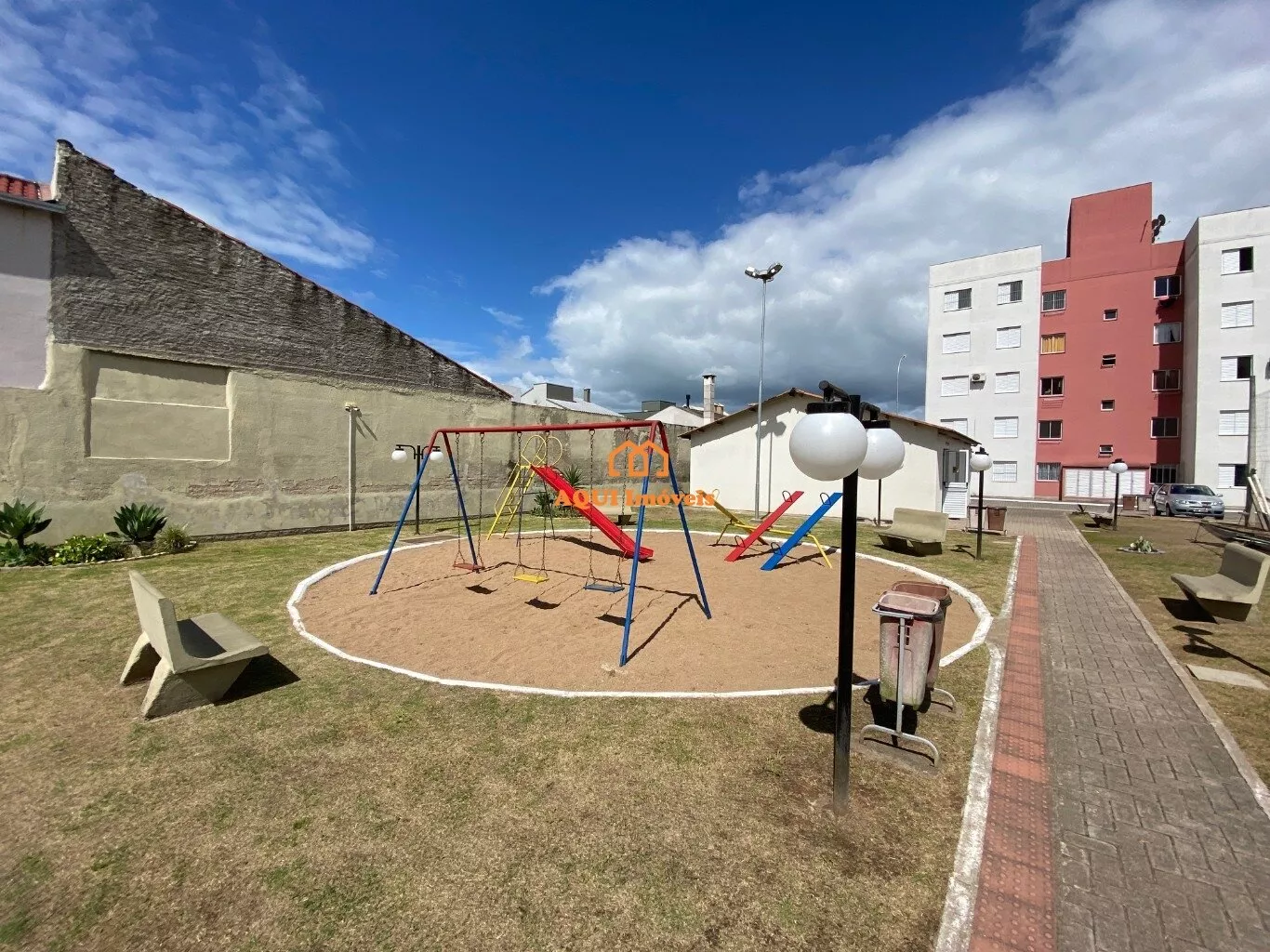 apartamento térreo, 2 dormitórios, sala, banheiro, cozinha, estacionamento, portaria 24h, salão de festas, playground.