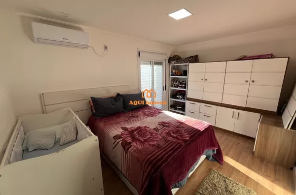 Casa em condomínio fechado, ampliada, 3 dormitório sendo 1 suíte, sala com lareira, sala de jantar, banheiro social, cozinha com móveis planejados, churrasqueira, pátio, 2 vagas de garagem na frente do imóvel, placas fotovoltaicas, portaria 24h, piscina, quiosque com churrasqueira, quadra poliesportiva.